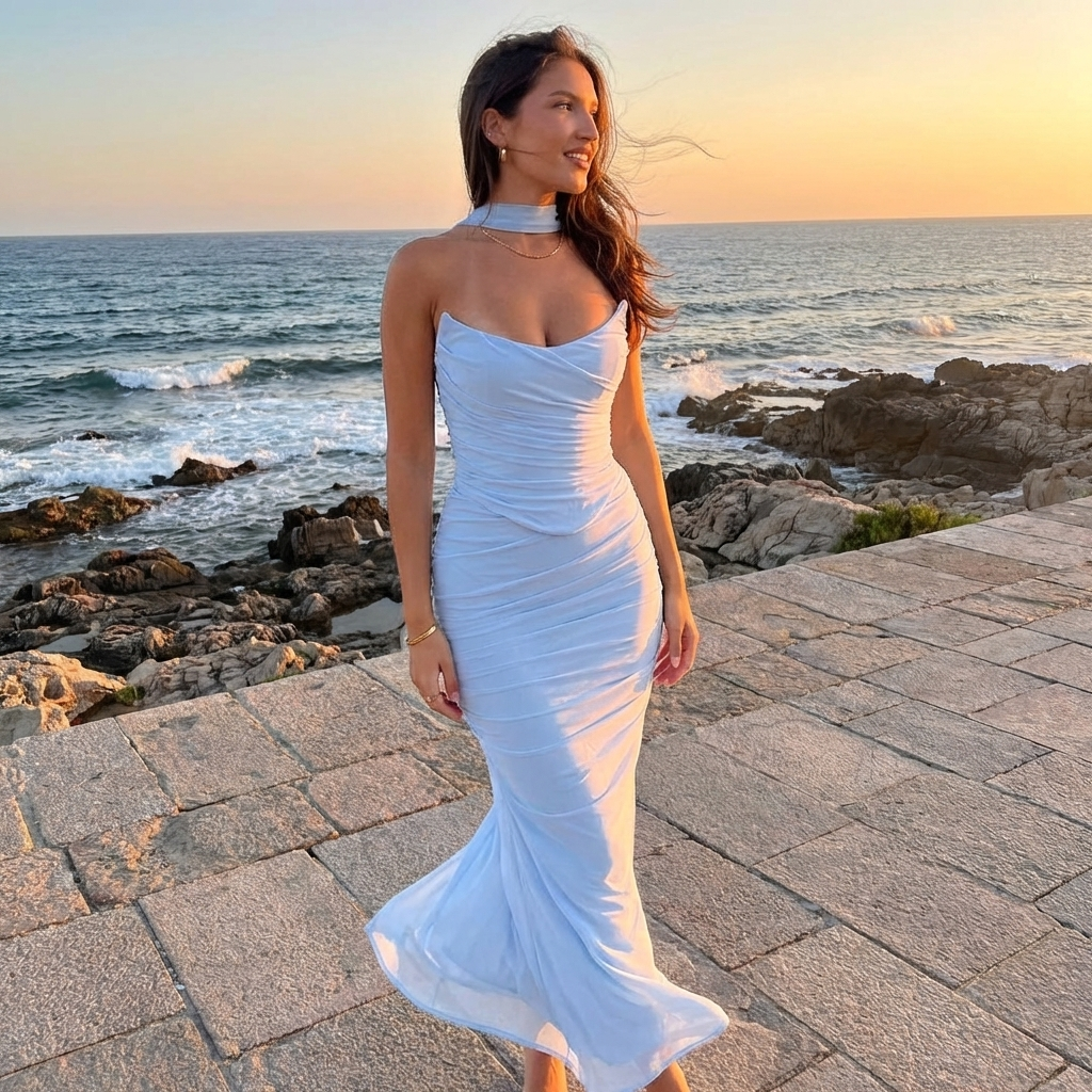 Το απαλό ύφασμα και η διαχρονική γραμμή το καθιστούν ιδανικό για ιδιαίτερες περιστάσεις, βραδινές εξόδους ή καλοκαιρινές εκδηλώσεις δίπλα στη θάλασσα.